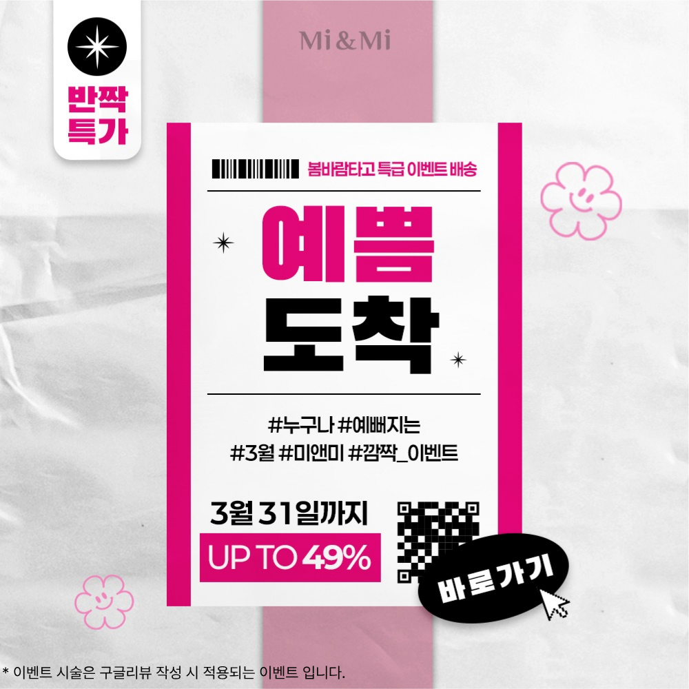 예쁨 도착 이벤트 기간 : 3/16~3/31 기간 : 2026-03-16~2026-03-31까지
