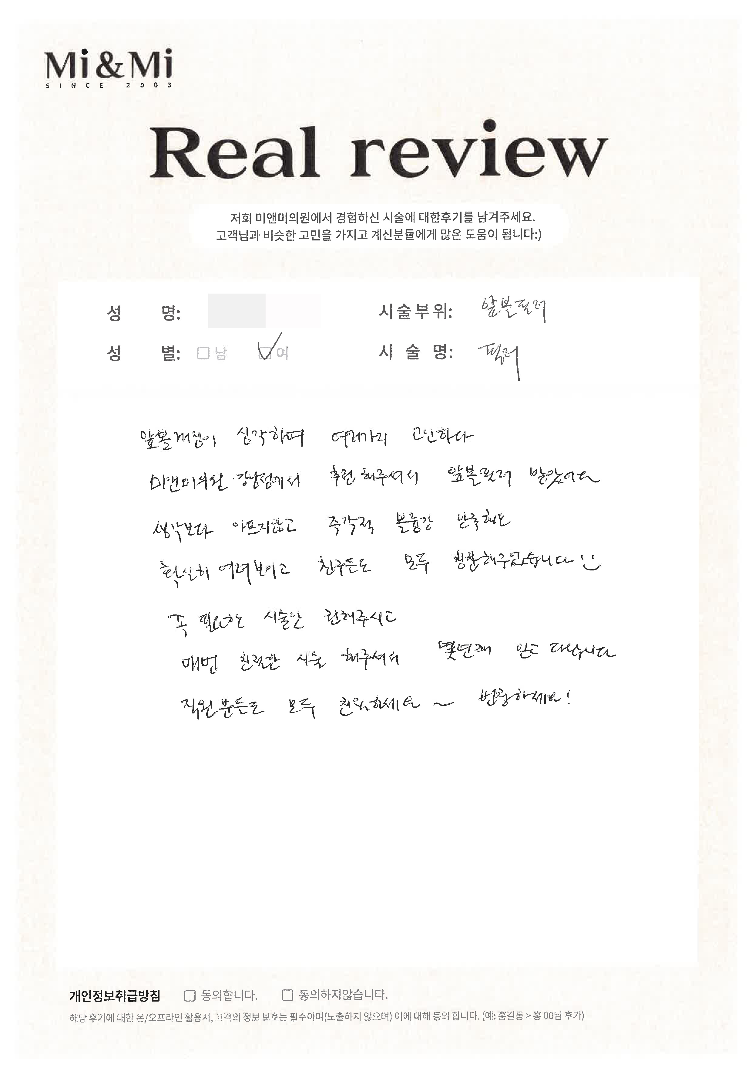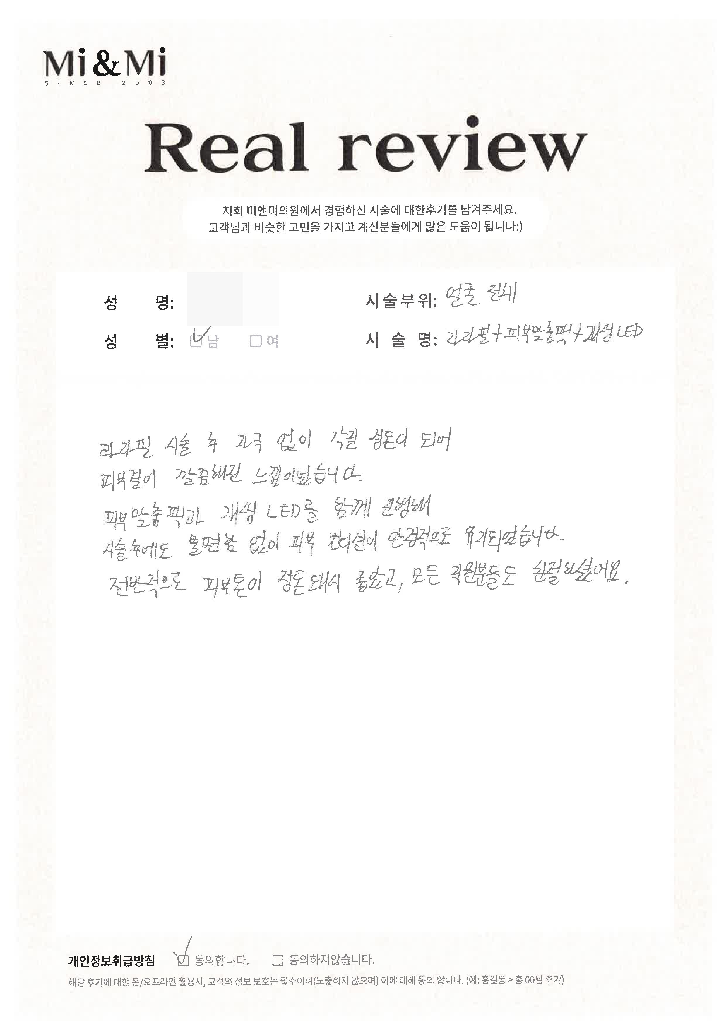 • 실장님도 친절하고 다른 시술 강요가 없어 편했어요