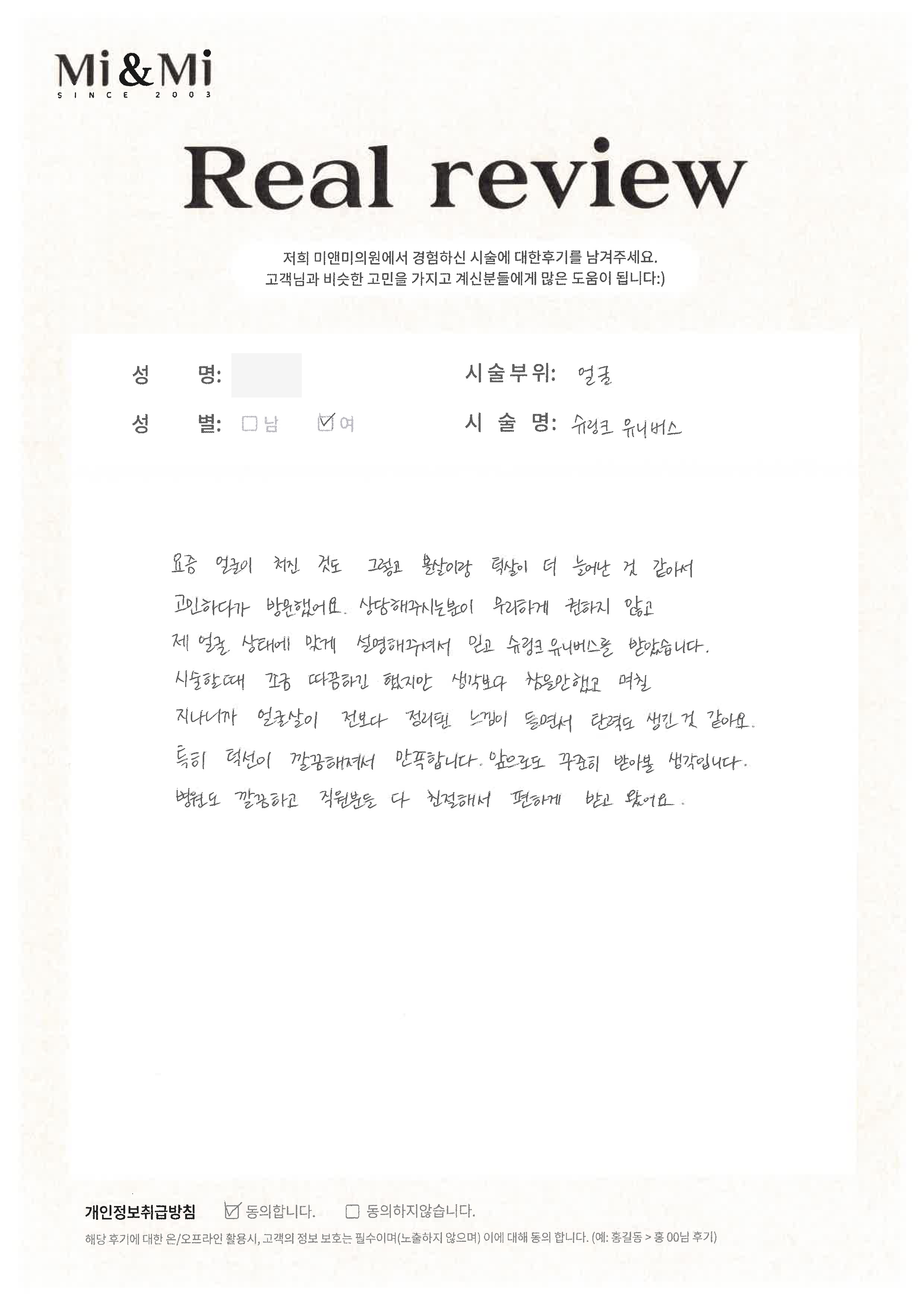 [선택] 시술안내,공지,이벤트 등 문자 수신에 동의